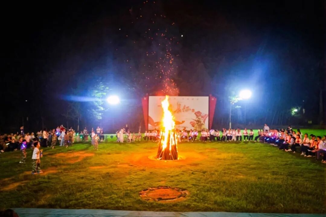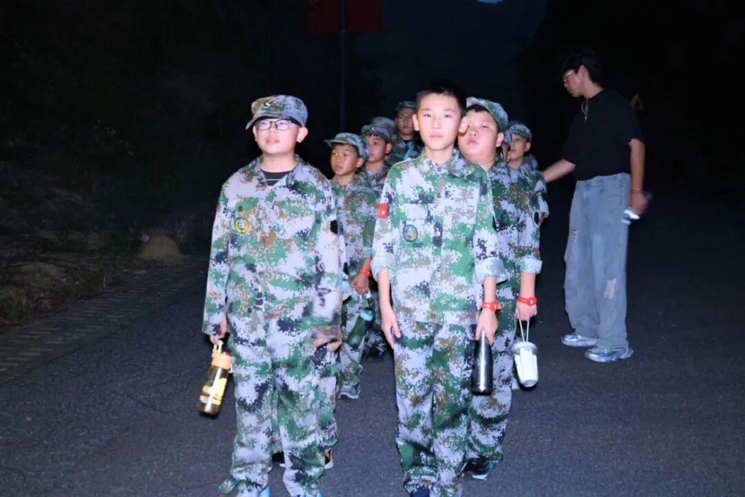 第二天晚上,孩子们模拟夜行军流程,了解了夜行军的历史来源,体验急行军、隐蔽行军等环节,并在大草坪上举行了篝火晚会。大家围坐一圈,尽情狂欢,欢声笑语不断。