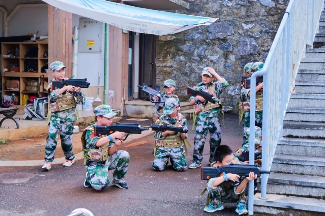 孩子们还进行了激烈的真人CS对抗。他们分成小组,在模拟战场上展开激战,不仅锻炼了身体,还培养了团队协作和应变能力。