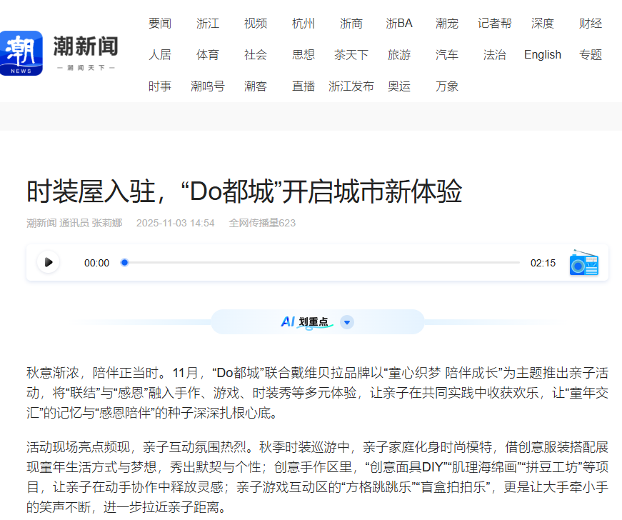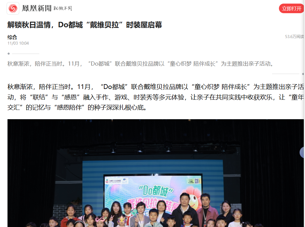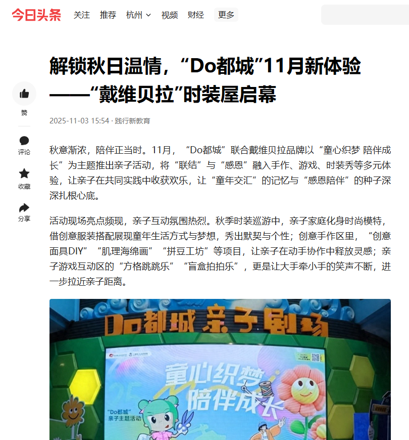 凤凰新闻、潮新闻、杭州新闻等媒体报道Do都城“戴维贝拉”时装屋升级开放