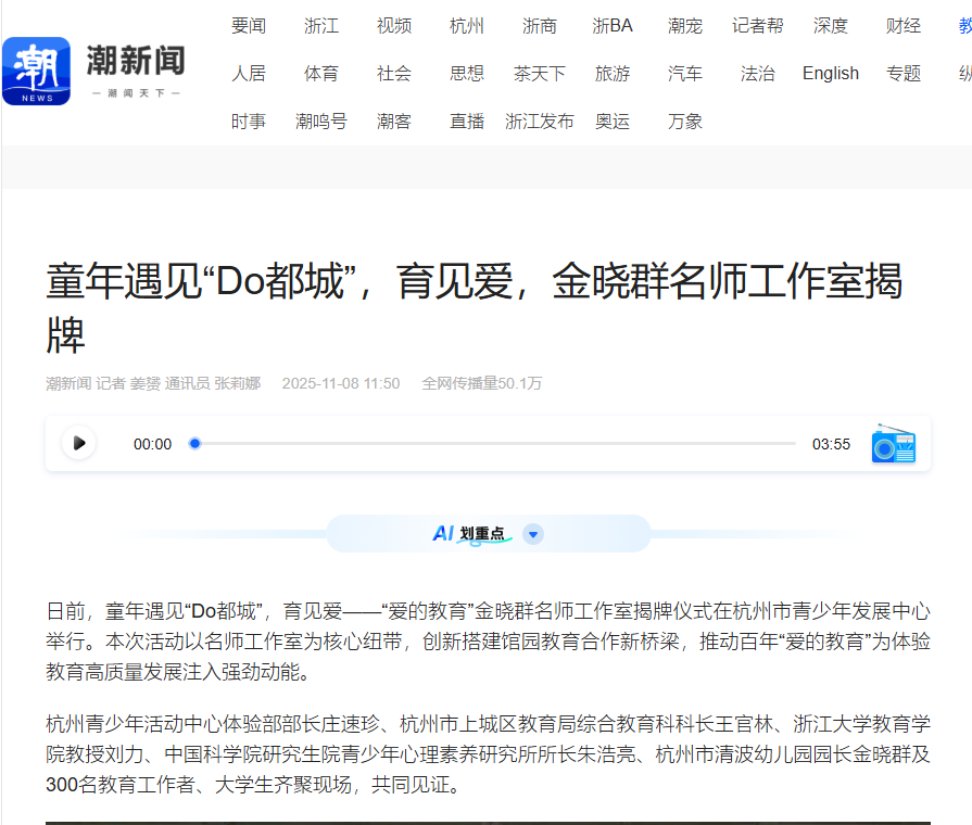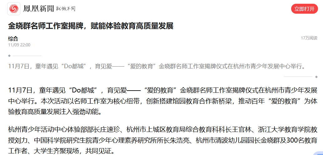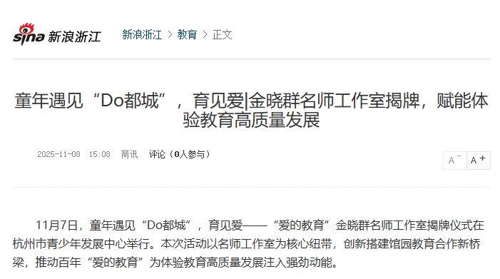 凤凰网、人民号等8家媒体报道“童年遇见‘Do都城’,育见爱——金晓群名师工作室揭牌”活动