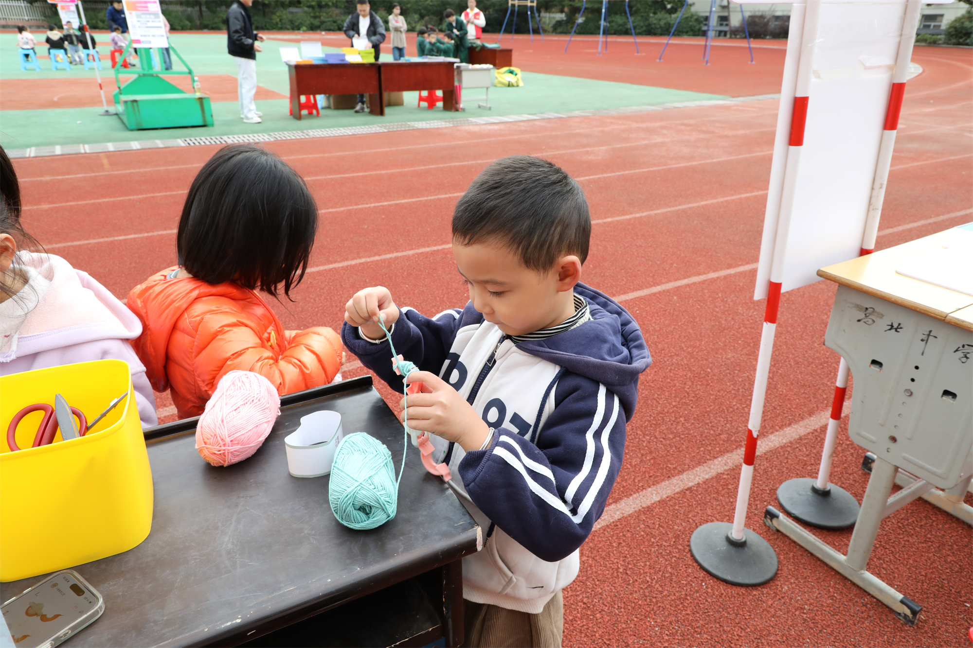 同行单位戴维贝拉团队带来的毛球手作体验项目同样备受欢迎。孩子们变身小小设计师,将色彩斑斓、触感柔软的毛线通过缠绕、修剪、塑形,打造成一个个圆润可爱的毛球。当平凡材料在手中绽放创意光彩,孩子们脸上洋溢着惊喜笑容,美与创意的种子也在心中悄然生根发芽。