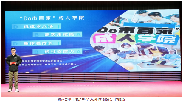 现场,杭州青少年活动中心“Do都城”副馆长仲维杰深度解读“Do市百家”成人学院。据介绍,学院创新构建“四位一体”服务生态,汇集百位专家大师共创品质课程,2025年已开设“健康养生、生活艺术、职场赋能、家庭教育”四大领域共30门课程,累计服务学员超3000人次。同步推出的“Do市雅趣社”“Do市百家大讲堂”“宝贝大当家,家长小学霸”等特色活动,更是共同织就了一个活跃、温暖且极具粘性的用户成长社区。“为忙碌的当代成人搭建真正的成长家园,让终身学习成为友好、从容、充满获得感的生活方式。”