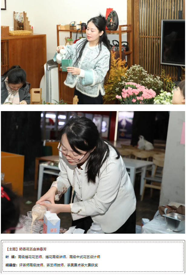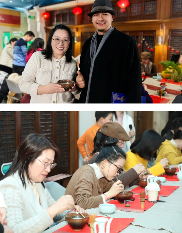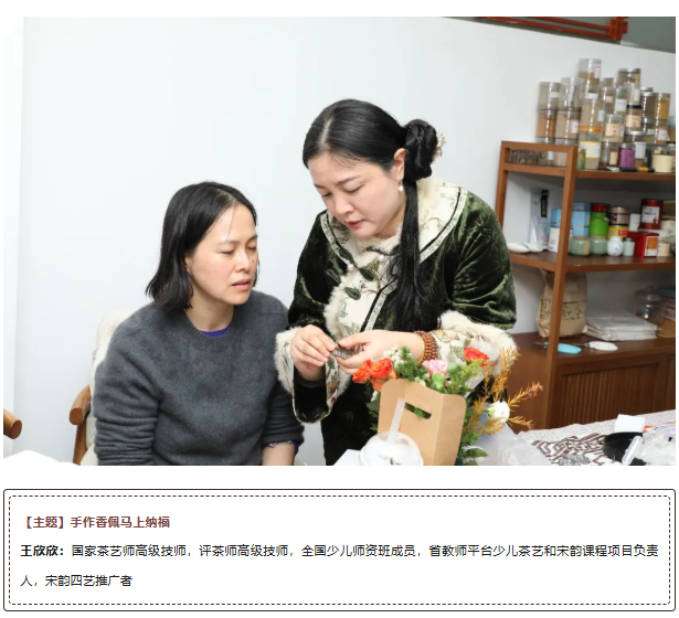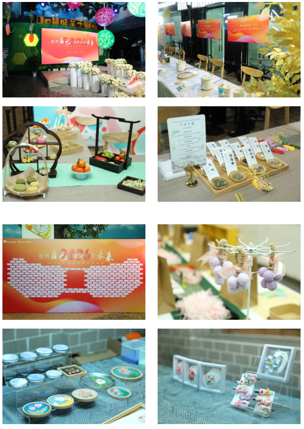 “重养自己·润己”体验区尽显温柔优雅。茶艺老师演示宋茶点制作与唐代煮茶礼仪,学员亲手体验泡茶全程,花艺体验让大家制作专属新年花束,传统音律鉴赏区的古琴雅韵与文化故事,更让人们在沉浸式体验中舒缓焦虑、收获治愈。