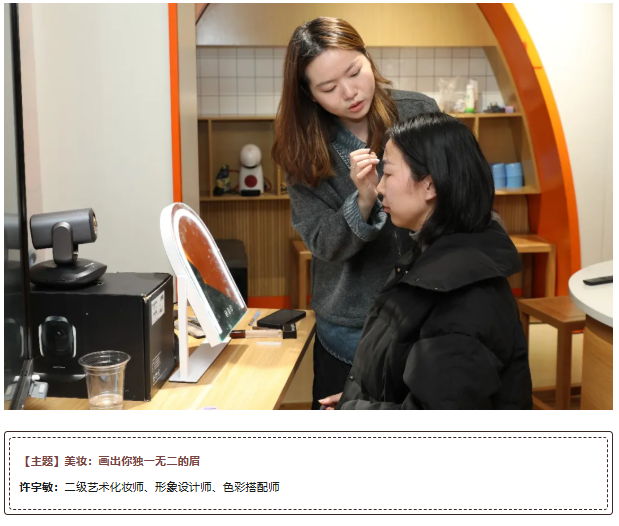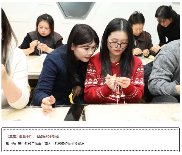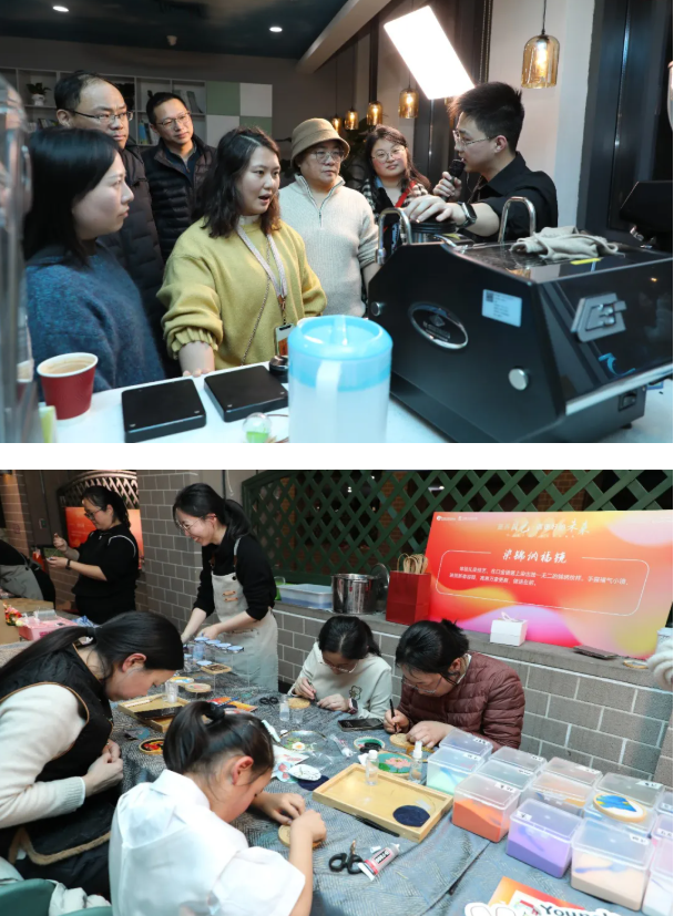 “重养自己·悦己”体验区氛围热烈。咖啡师现场教学拉花技巧,拉花PK赛仪式感拉满,形象设计、美妆画眉环节为学员定制专属造型,毛线编织、羊毛毡等手作体验更是让大家在互动中收获别致新年礼。