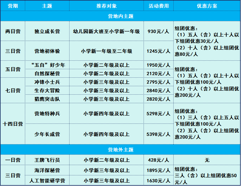 其余请关注营地官网www.5scamp.com和微信公众号的报名信息!