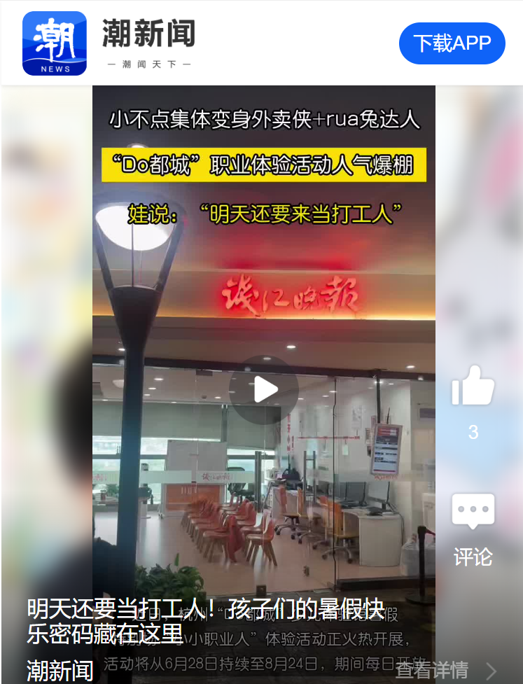 潮新闻等媒体报道杭州“小候鸟”夏令营在“Do都城”启幕