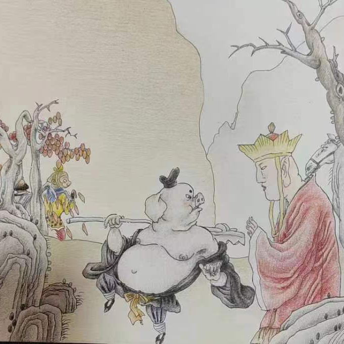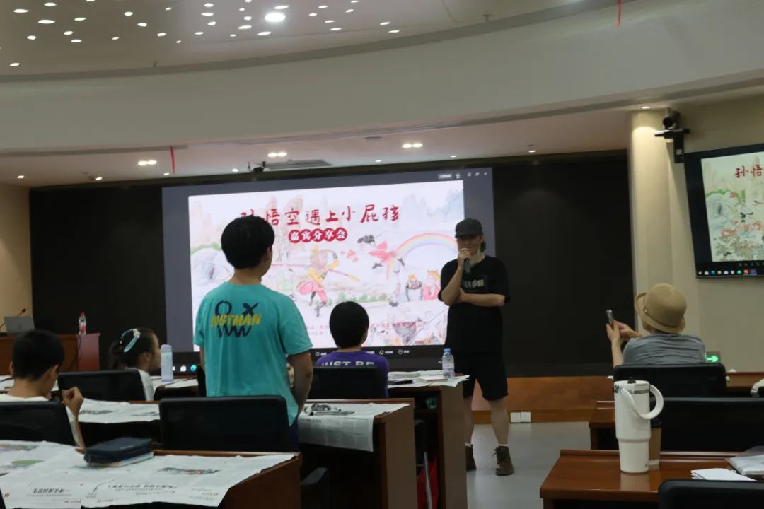 宓老师还深入浅出地讲解了他现在的绘画风格——融合了中国传统水墨的写意精神与现代漫画的夸张幽默。他现场展示了如何用简洁而富有表现力的线条、灵动的水墨晕染,生动地刻画出孙悟空的“神”与“猴”性,以及小屁孩们的天真与狡黠。他强调“意在笔先”,追求神韵和趣味性。