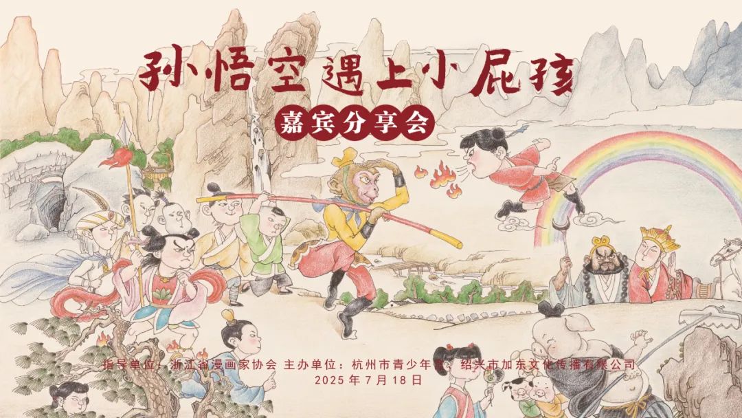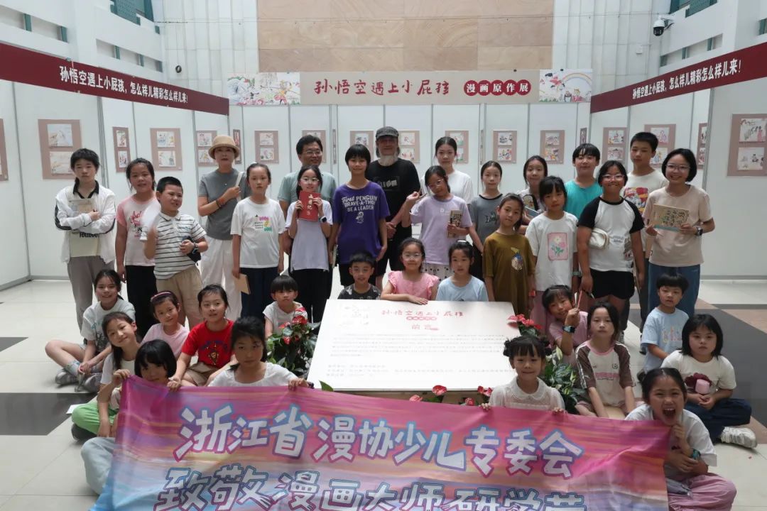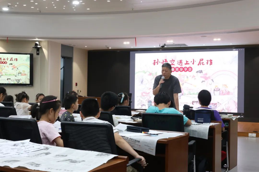 这个7月,杭州青少年活动中心美术楼一楼化身一个充满童趣与想象力的奇幻世界!浙江省漫画家协会副主席宓风光老师带来的《孙悟空遇上小屁孩》主题展览,以其独特的视角和幽默的笔触,让经典神话人物孙悟空与当代“小屁孩”碰撞出无限火花!7月18日下午,宓风光老师亲临现场,带来了一场妙趣横生、干货满满的创作分享会,与浙江省漫协少儿专委会的小漫画家们及中心美术部优秀学员们零距离互动,点燃了孩子们的创作热情!