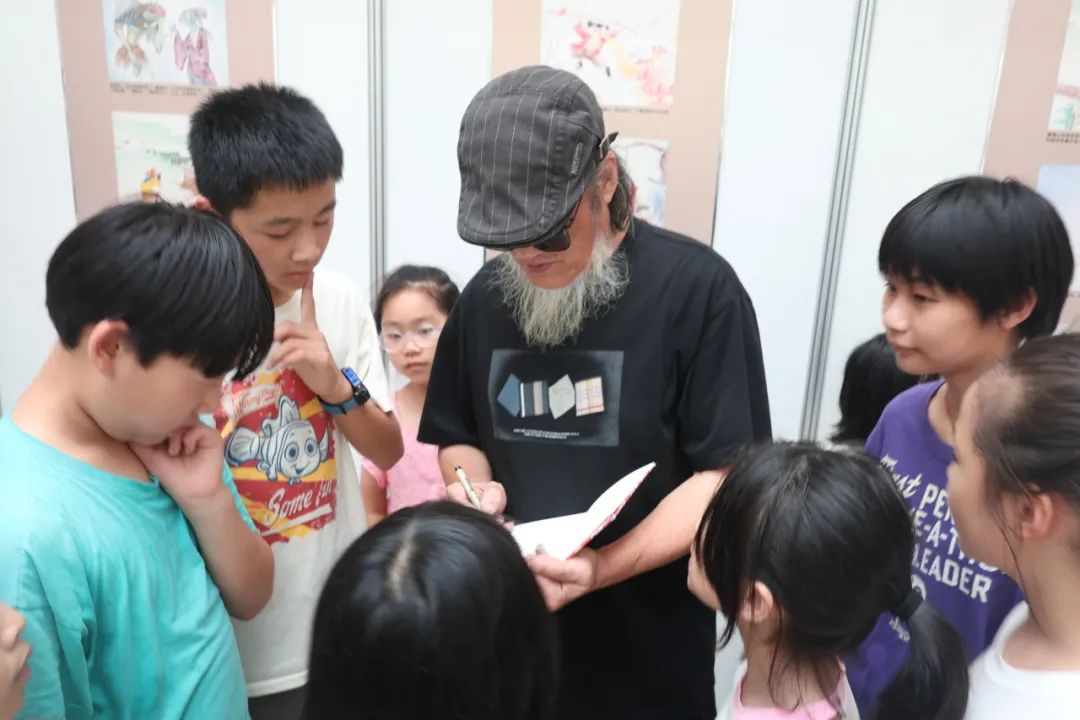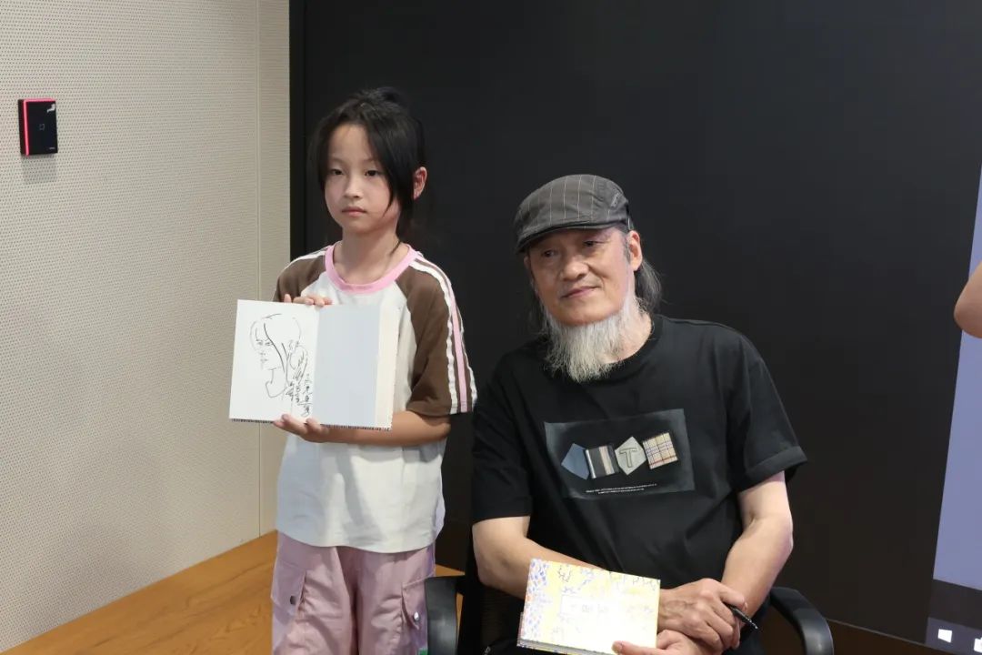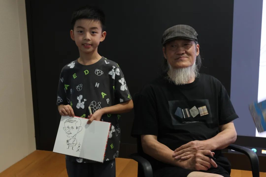 最让孩子们兴奋的环节莫过于签名与肖像速写!宓风光老师和故事作者钱勇老师化身“神笔马良”,现场为踊跃的孩子们绘制肖像漫画书写励志诗句。只见他寥寥数笔,抓住孩子们最鲜明的特征,辅以夸张而传神的处理,一张张生动有趣、独一无二的肖像漫画便跃然纸上,引得现场阵阵惊叹和欢笑。拿到签名和专属肖像画的孩子们,脸上都洋溢着幸福和骄傲的笑容。这不仅是一份珍贵的礼物,更是一次与艺术大师零距离接触的难忘经历,在孩子心中埋下了艺术的种子。