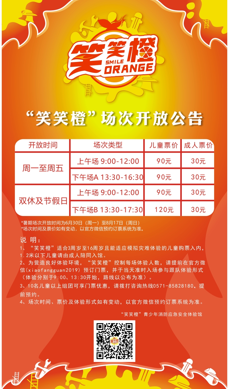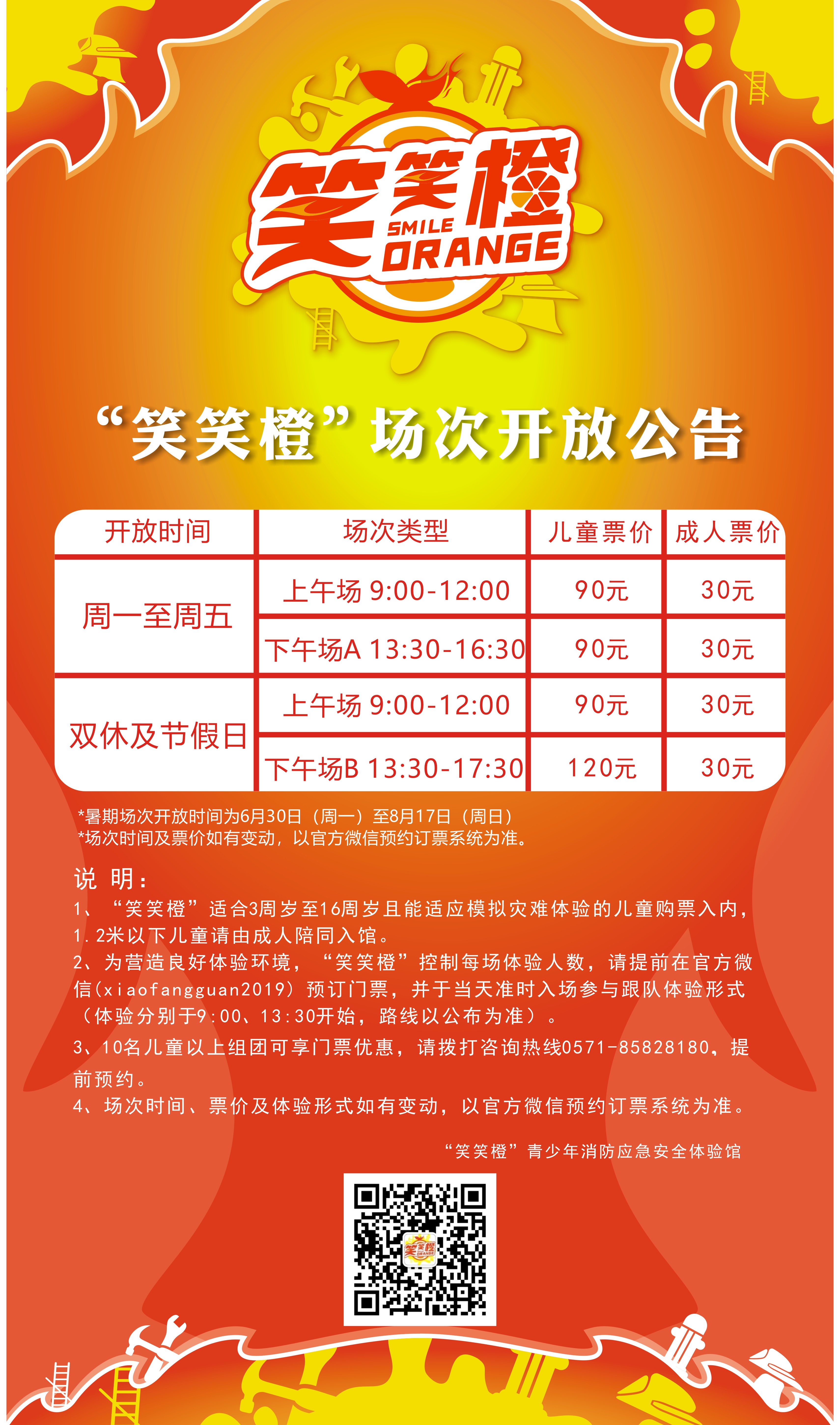 2025年6月30日至8月17日暑假期间,“笑笑橙”每天开放周一至周五开放上午场9:00-12:00,下午场13:30-16:30周末开放上午场9:00-12:00,下午场13:30-17:30。