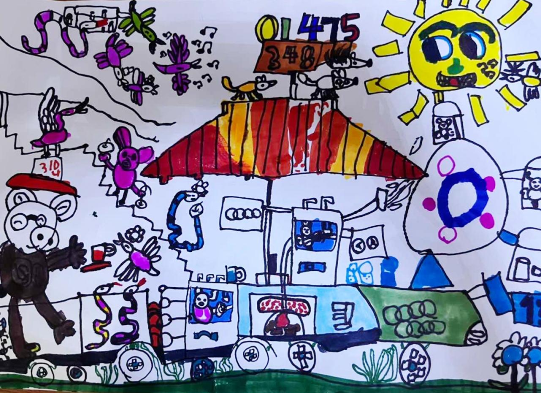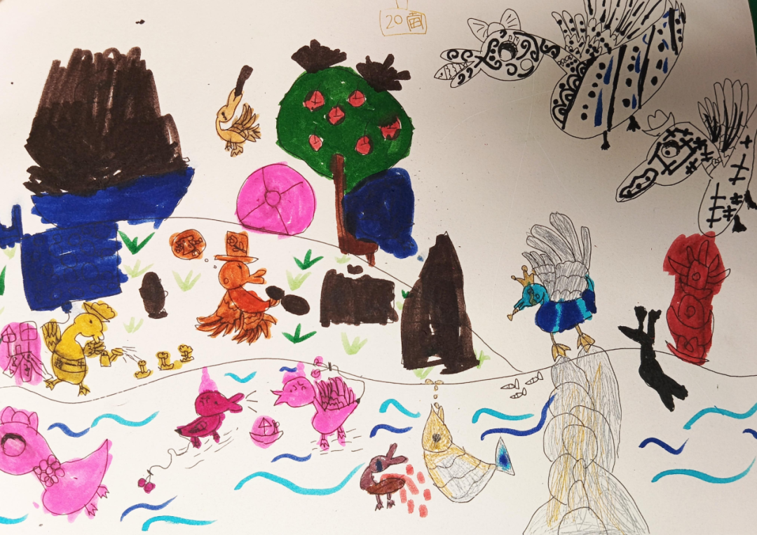 子木同学,绘画习惯非常好,想象力丰富,绘画过程也很有条理,能感受到有好的成长氛围。