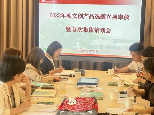 4月27日下午,活动中心2023年度文创产品选题审核暨首次集体策划会在中心行政楼一楼会议室召开,各业务部门与阵地开放部门负责文创开发的13位干部与教师出席会议。