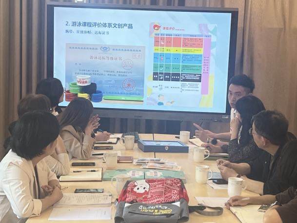 体育部张伟峰副部长(主持工作)、幼教部陈肖老师和刘霞老师代表2022年度优秀文创产品开发团队分享了策划过程与经验。“YOU游”荣耀泳帽系列与“成长纪念册”产品实物和开发策略让与会人员深受启发。