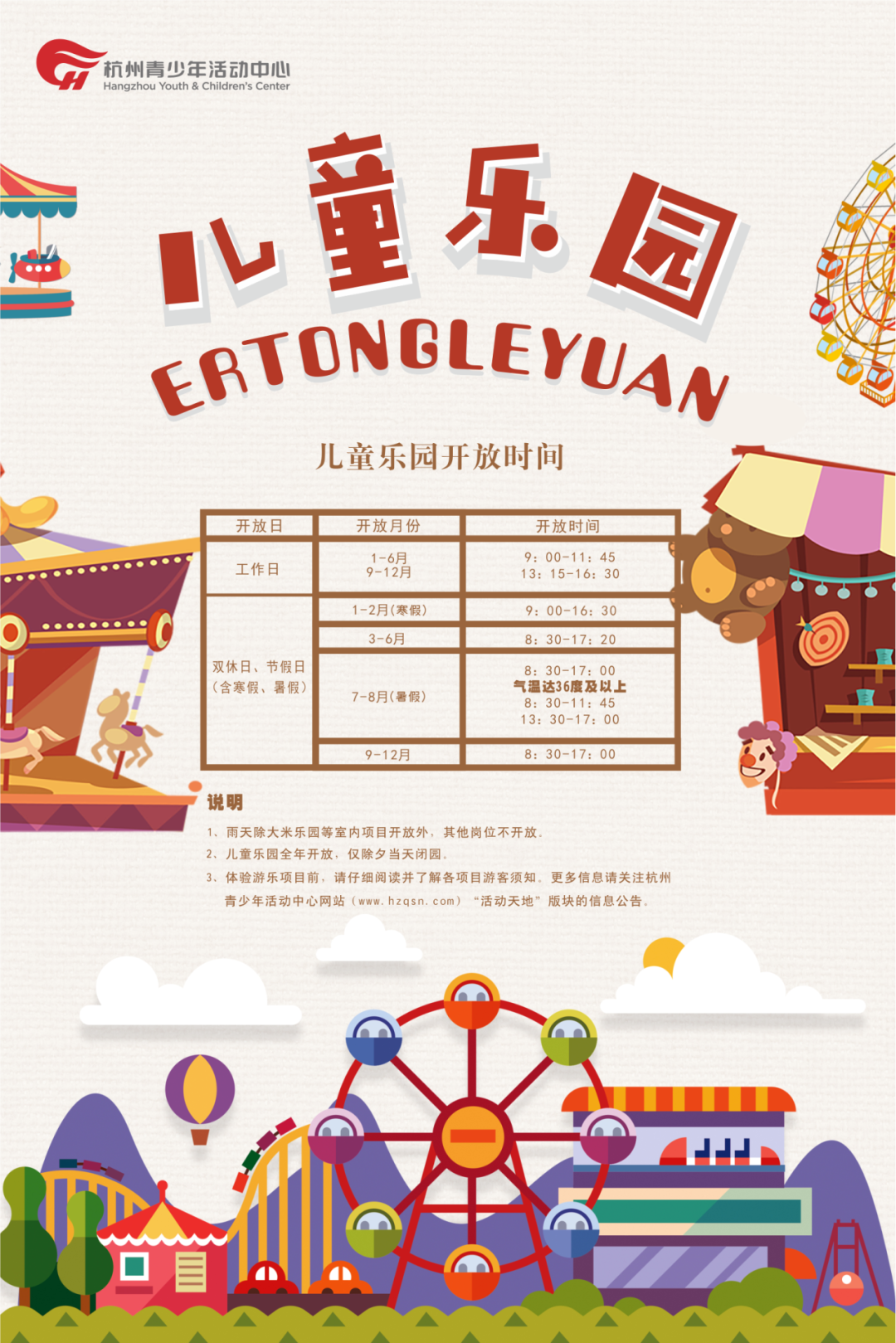 室外项目 如遇高温天气,当日最高气温 ≥36℃,中午 11:45 —13:30暂停开放 ;