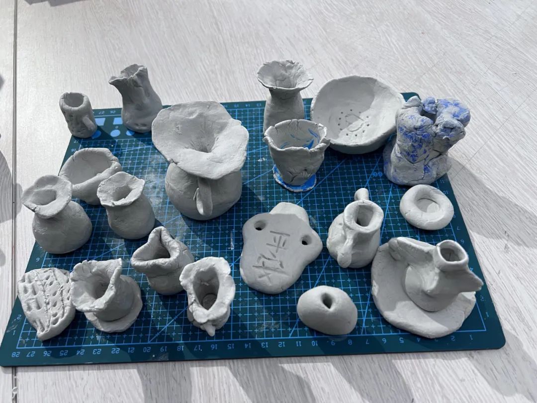 “入窑一色,出窑万彩”的钧瓷有多神奇?孩子们亲手触摸了带着细小花纹的钧瓷碎片,听老师讲釉料在窑火中“变身”的科学原理。虽然没能亲手烧制,但他们在素坯上画满了天马行空的图案:有星空般的蓝紫釉色构想,有带着笑脸的钧瓷纹样,仿佛下一秒,这些作品就会在窑火中绽放出独属于自己的色彩。