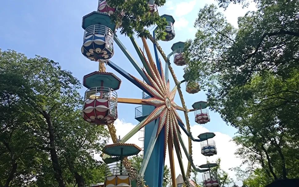 缓缓升起的“观览车”,像一个移动的时光胶囊。当座舱升到最高点,整个乐园如画卷般在脚下徐徐展开。这一刻,你会不会想起高三晚自习的窗外?那时总爱望着月亮出神,幻想考完试要去的远方。就像现在,“观览车”每升高一米,视野就开阔一分,那些曾经以为跨不过的坎,此刻回望,竟渺小如乐园里起伏的小土坡。原来,告别不是遗忘,是站在更高处,看懂当初的执着与勇敢。