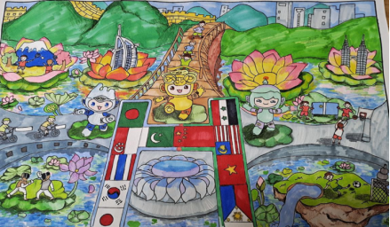 字母H喜迎亚运主题相结合,展现小伢儿喜迎八方客的真挚情感