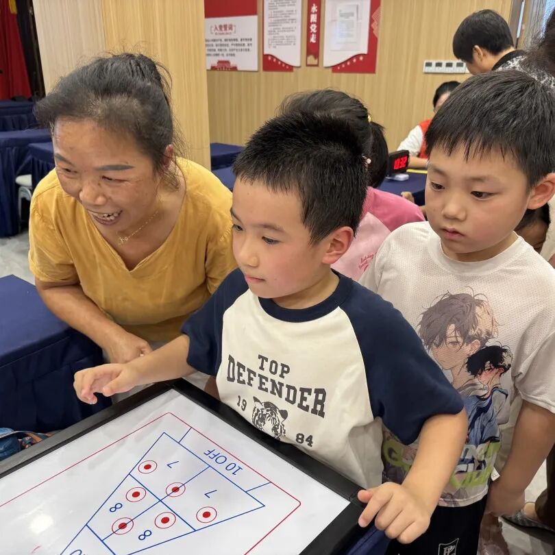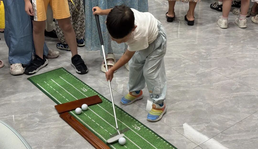 现场不断响起惊呼声和欢笑声,整个会议室热闹非凡,每一张笑脸都在为十环命中而鼓掌、为小球进洞而欢呼,每一个孩子都沉浸在游戏的快乐之中。