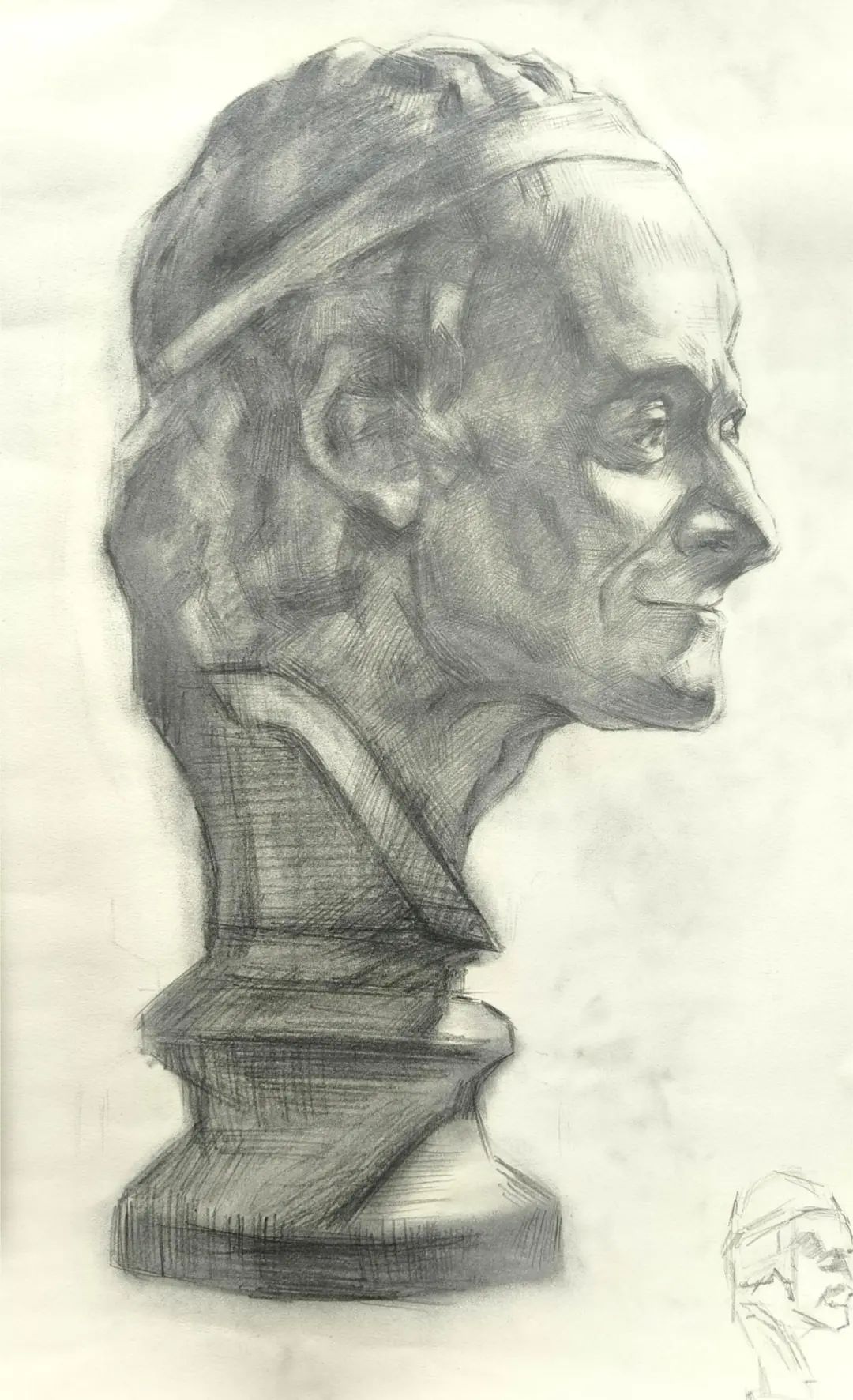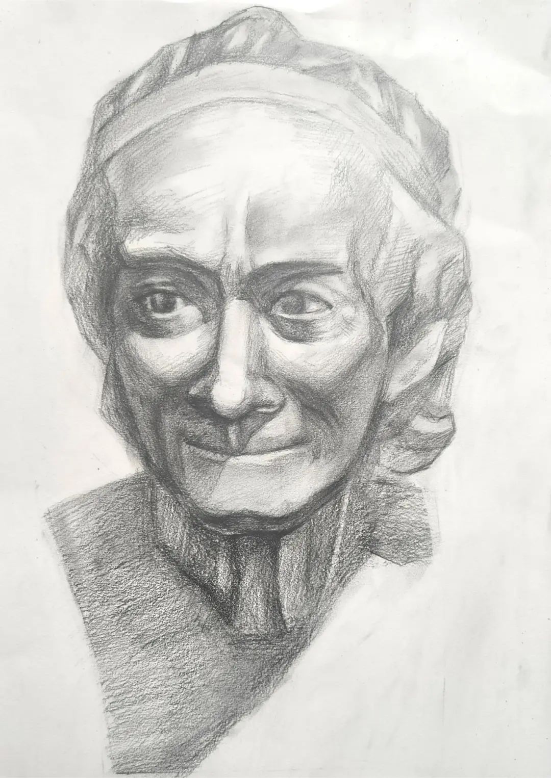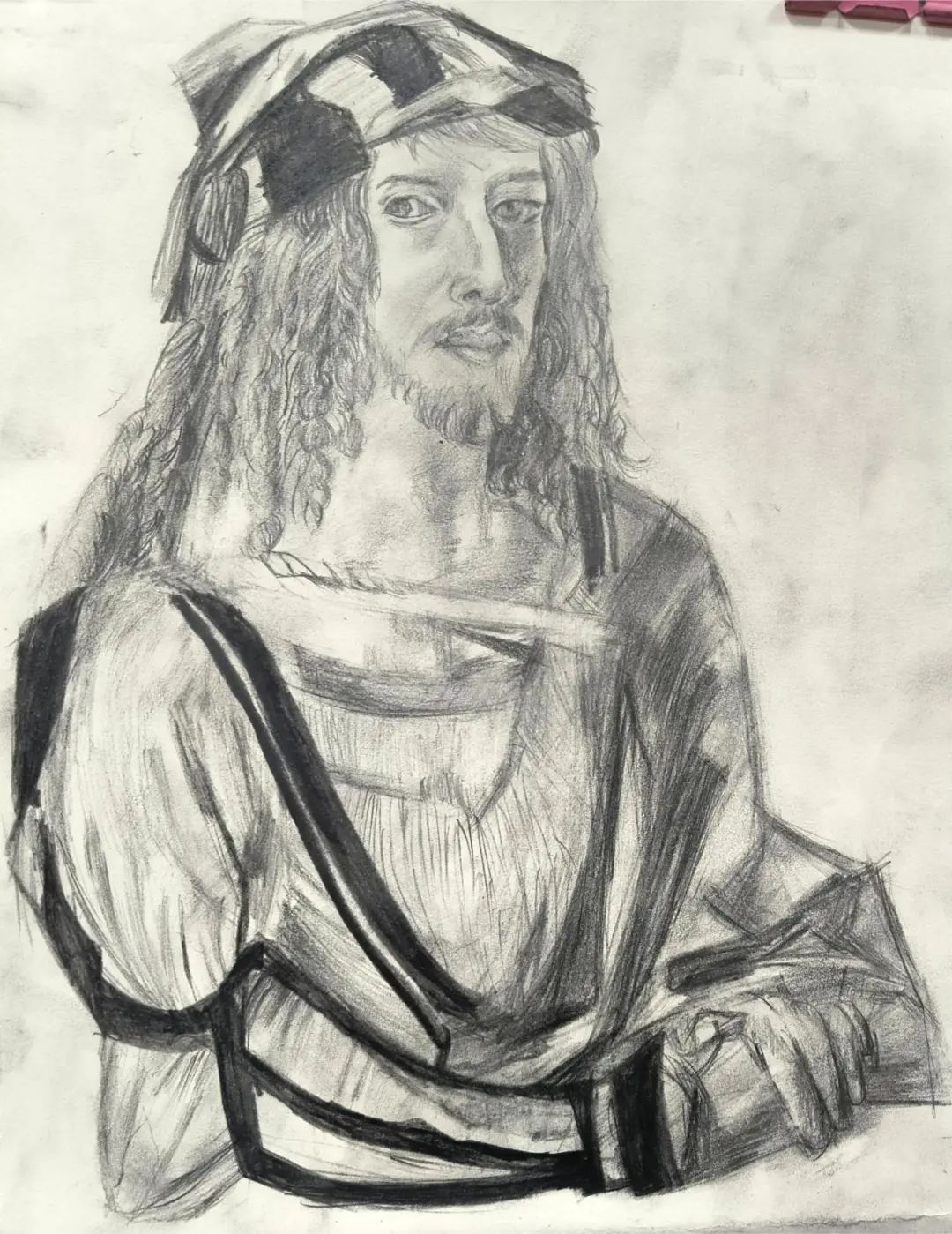 坚持练习,是学好素描最关键的一点,需要你衷心的去热爱它,当做一个长期的、调节生活的爱好来学习,从简单到复杂,逐渐掌握技巧,作品逐渐生动逼真。田老师在授课过程中,引导着每一位学员从大师的作品中汲取营养,学习他们的构图、线条运用和光影处理等技巧,为提升自己的绘画水平奠定了坚实的基础。