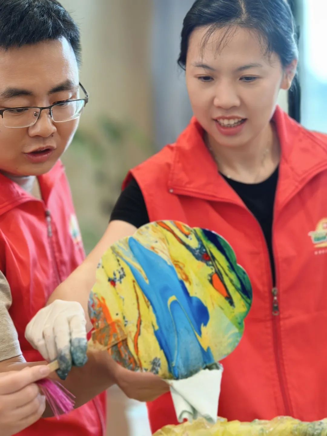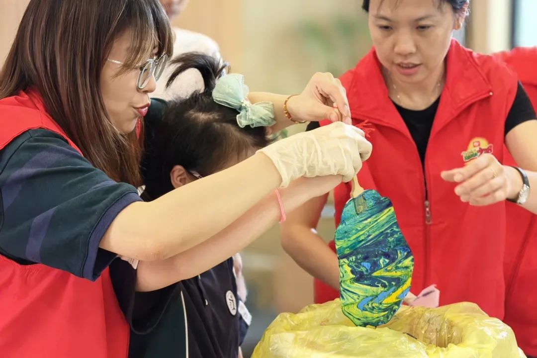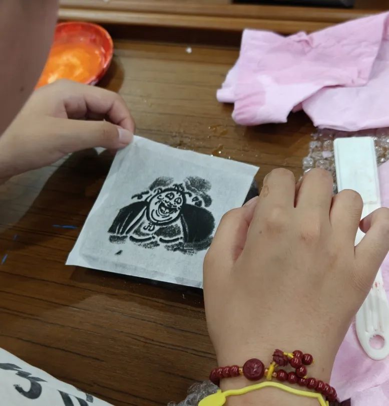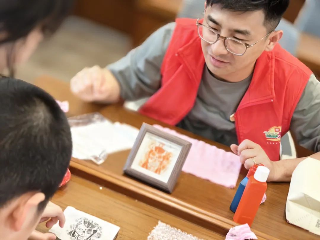 本次活动以游园会的形式展开,特别设置了一对一、点对点的细致辅导环节。孩子们在专业老师的指导下,热情参与了非遗石板拓印、宋运漆扇、趣味甲骨文和纸艺大搜索等丰富多彩的艺术体验。