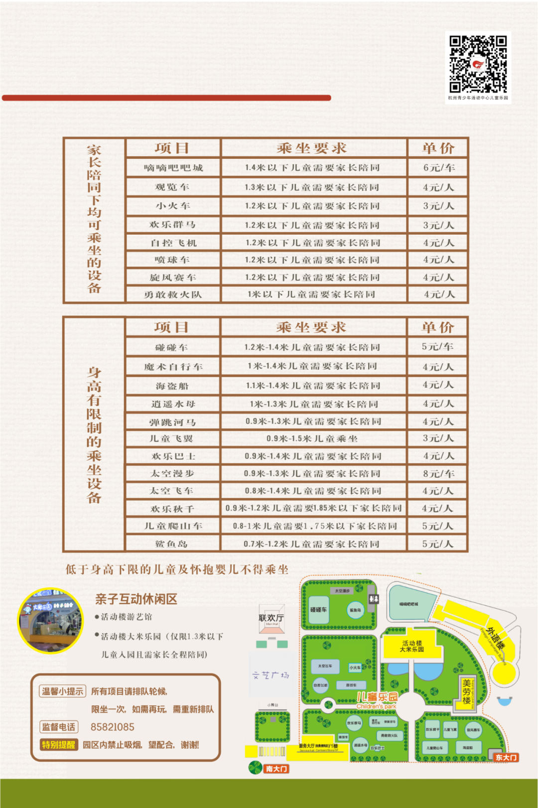 温馨提醒:雨天除室内项目(大米乐园)及4个室外项目(喷球车、欢乐群马、爬山车、碰碰车)开放外,其他项目出于安全考虑不对外开放。如遇恶劣天气,所有室外项目均不开放。