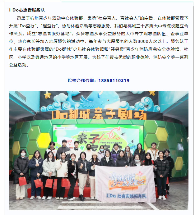每年有超过8000人次的大学生走进杭州青少年活动中心“Do都城”“笑笑橙”开展志愿服务、活动实践等。
