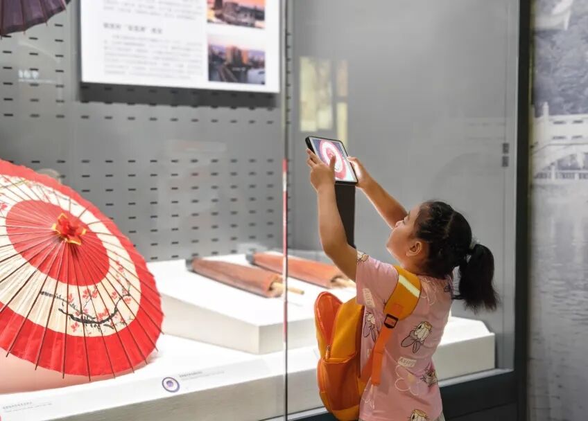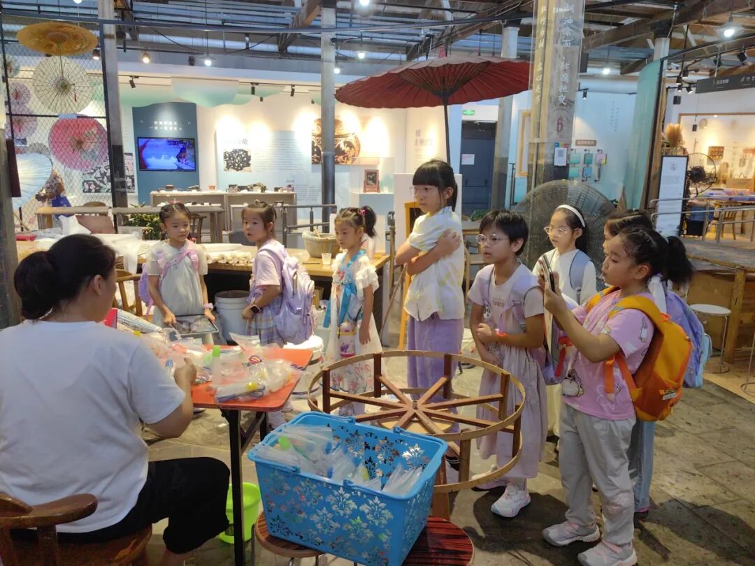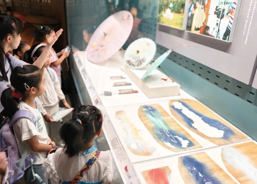 踏入伞博物馆,孩子们一边欣赏琳琅满目的伞艺展品,从古朴的油纸伞到创意十足的现代伞,一边认真聆听伞的历史。从早期的避雨工具,到后来融入刺绣、绘画的文化载体,沉浸式感受伞的独特魅力。