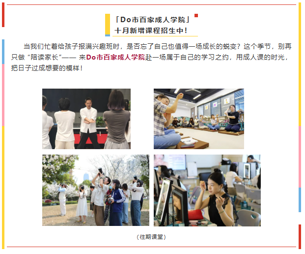 【Do市百家·成人学院】秋季新增课程限时招生中~防身术、手机摄影、皮具制作、生活美学……