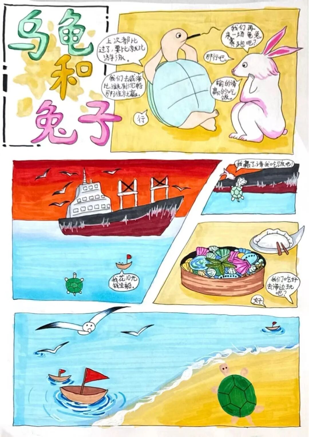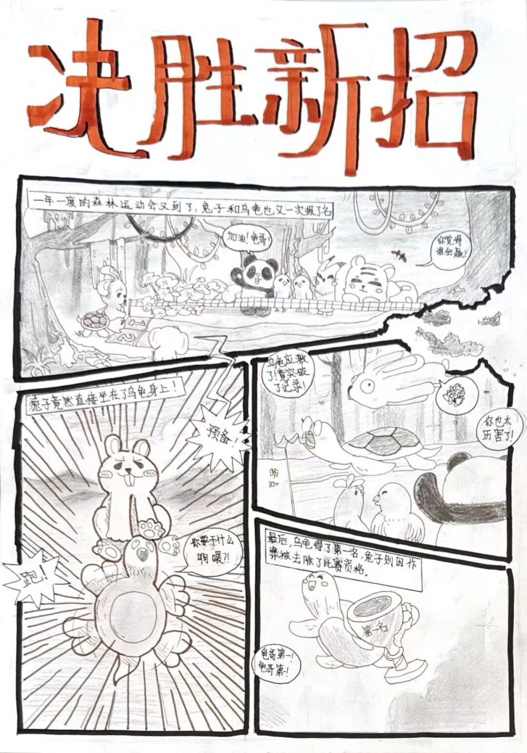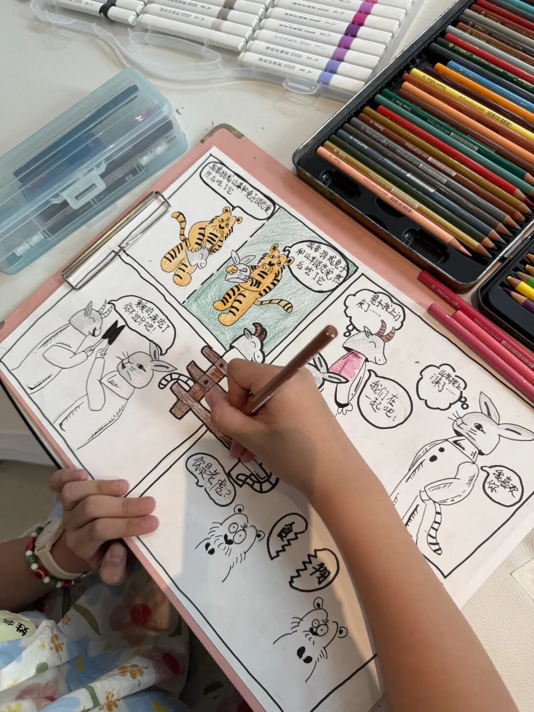 下午的考场,只听见画笔沙沙作响——最考验实力的四格漫画故事创编开始了!以华老的兔子为主题,孩子们需要构思一个完整的故事。