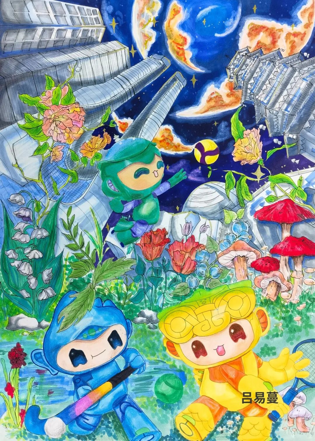绘画是一种表达情感和思想的艺术形式,通过画亚运,少先队员能够将自己对体育和运动的理解、喜爱和憧憬融入到作品中。这有助于培养他们的审美观点,锻炼他们的表达能力和想象力。
